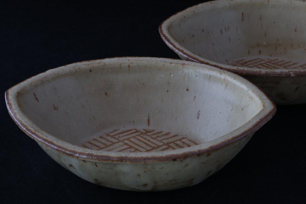 栗灰釉舟型ボウル W19.5㎝×14.5㎝×H5㎝ 各4,400円(税込) st25-86