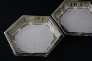 白釉六角皿 小 W21㎝×18㎝×H2.5㎝ 各4,400円(税込) st25-88