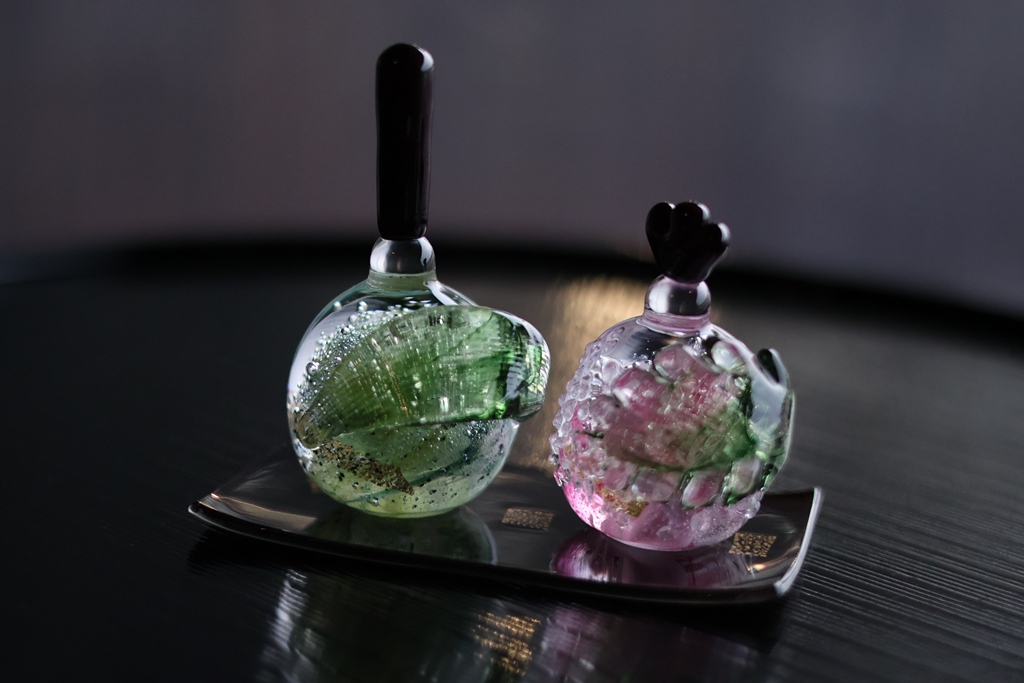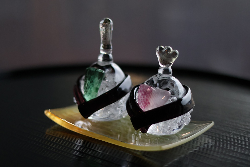 吹きガラスで作られた今年の新作ガラス雛は去年ともまた違った楽しさと面白さを兼ね備えたちょっと大人の雰囲気です。