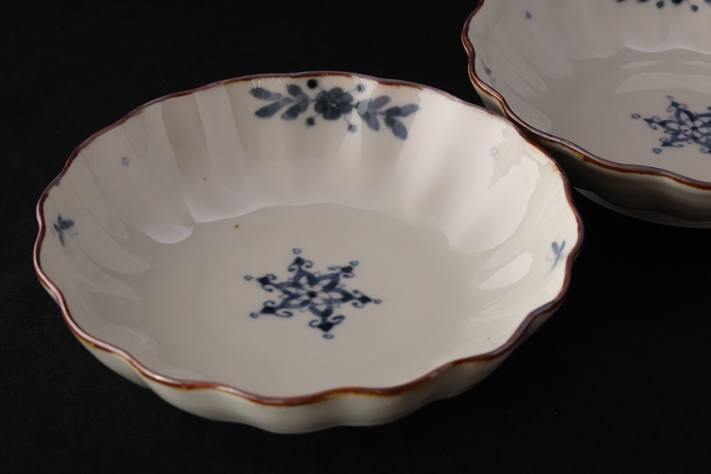 染付花蝶文輪花5.5寸鉢