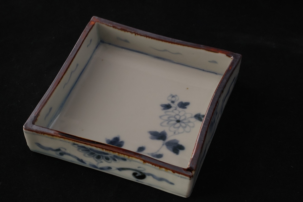 染付菊文角小鉢