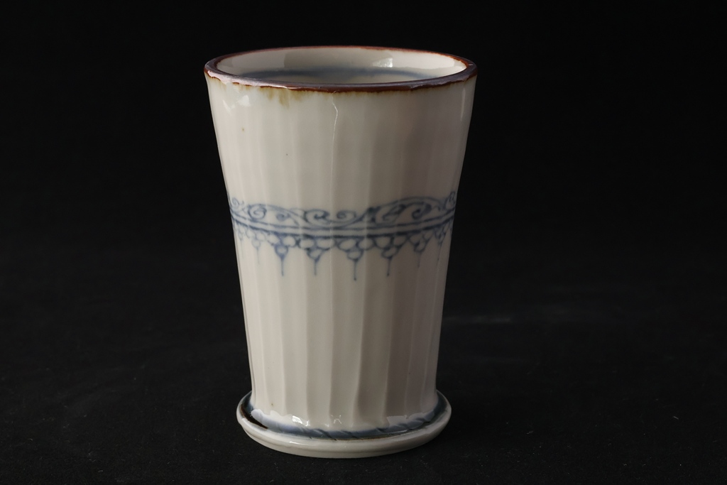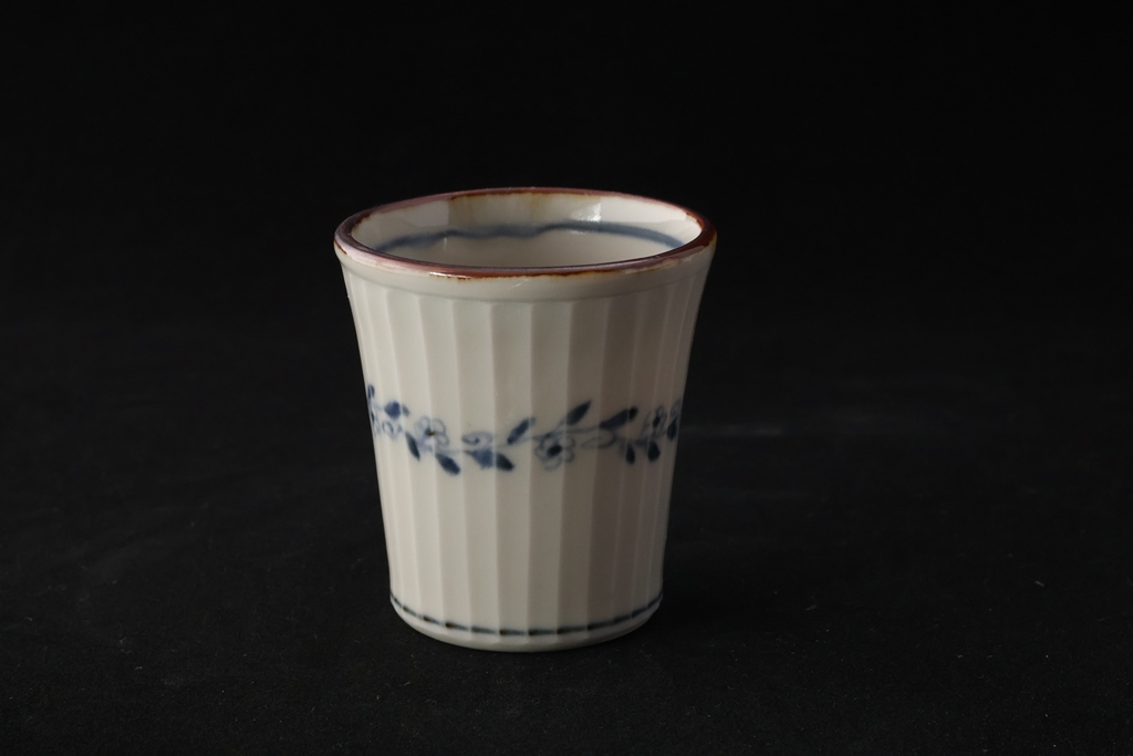 染付しのぎ花唐草文コップ