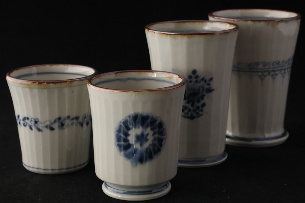 染付更紗文しのぎコップ