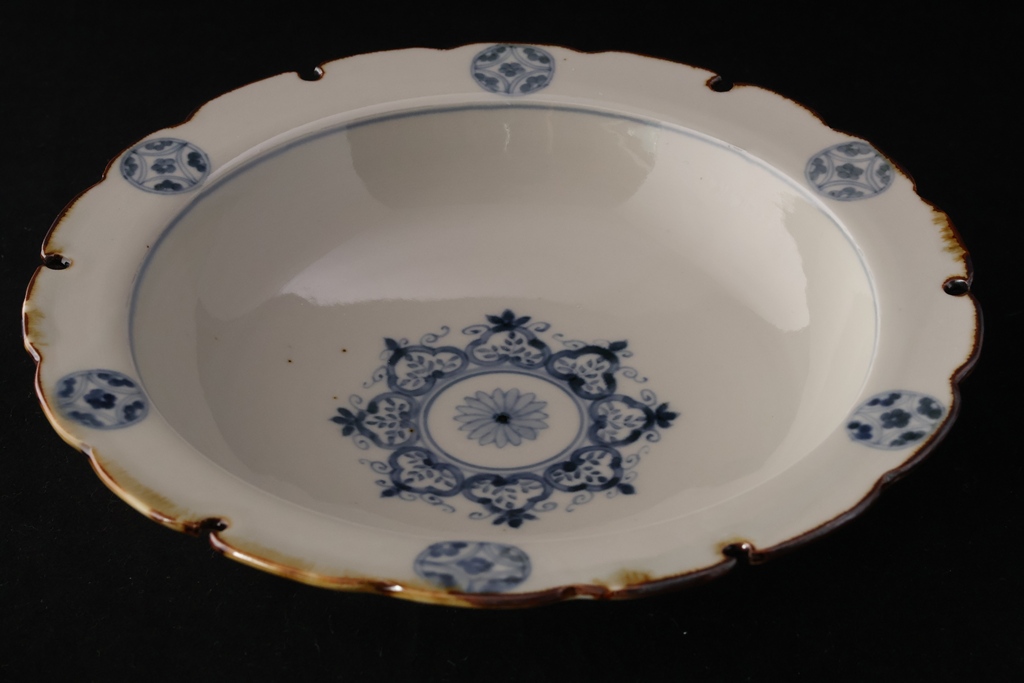 染付雪輪丸文8寸鉢