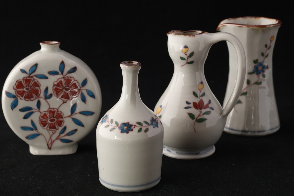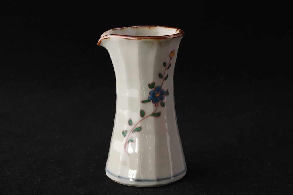 色絵花文面取り片口小瓶