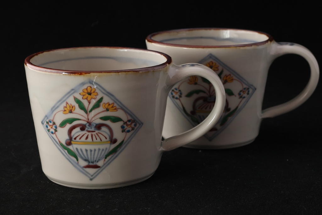 色絵花瓶文マグ 各4,950円(税込) w9㎝×h7.5㎝ sk26-160