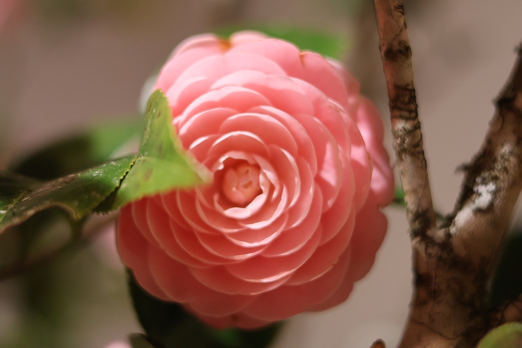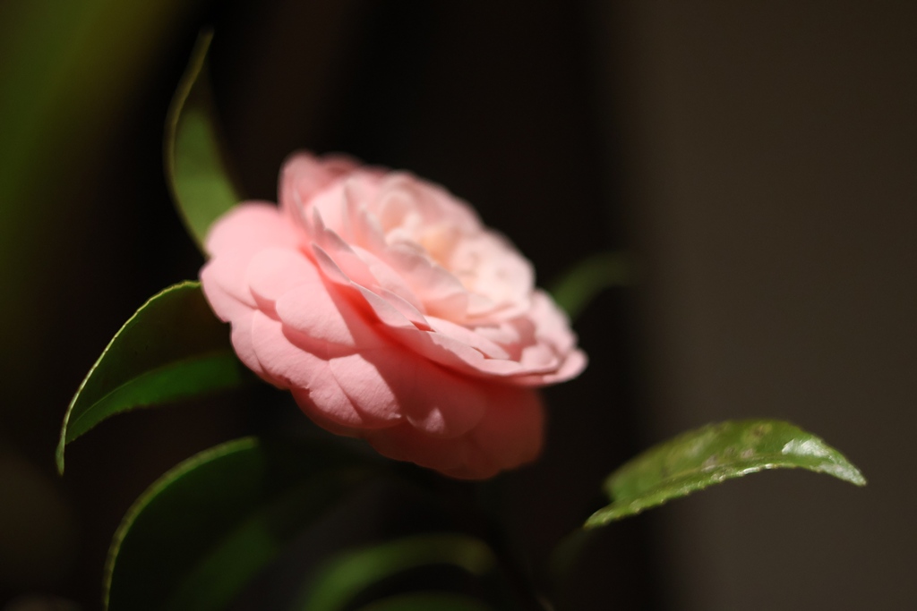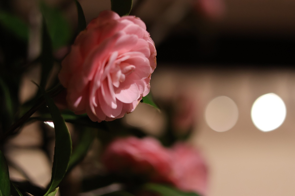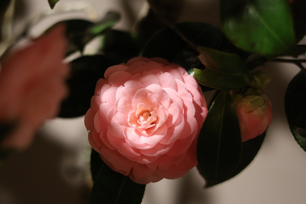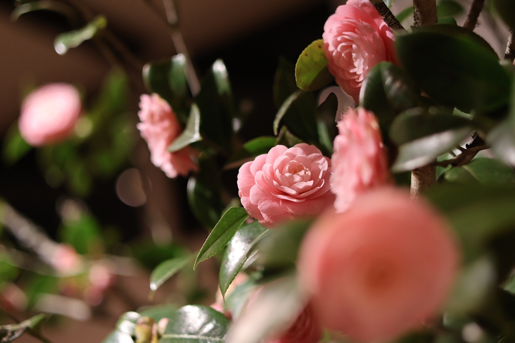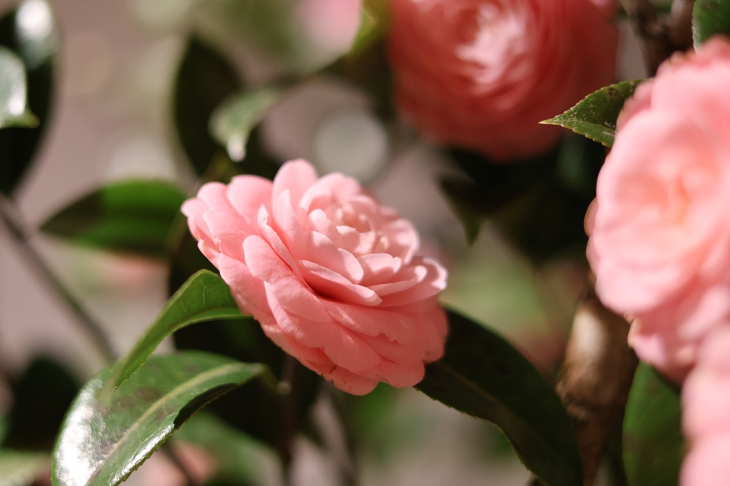 実家には何種類もの椿がありますが、その中でもひときわかわいらしい花を咲かせるのが乙女椿です。大輪の藪椿が満開になって迫力ある姿の隣で、清楚に咲いています。