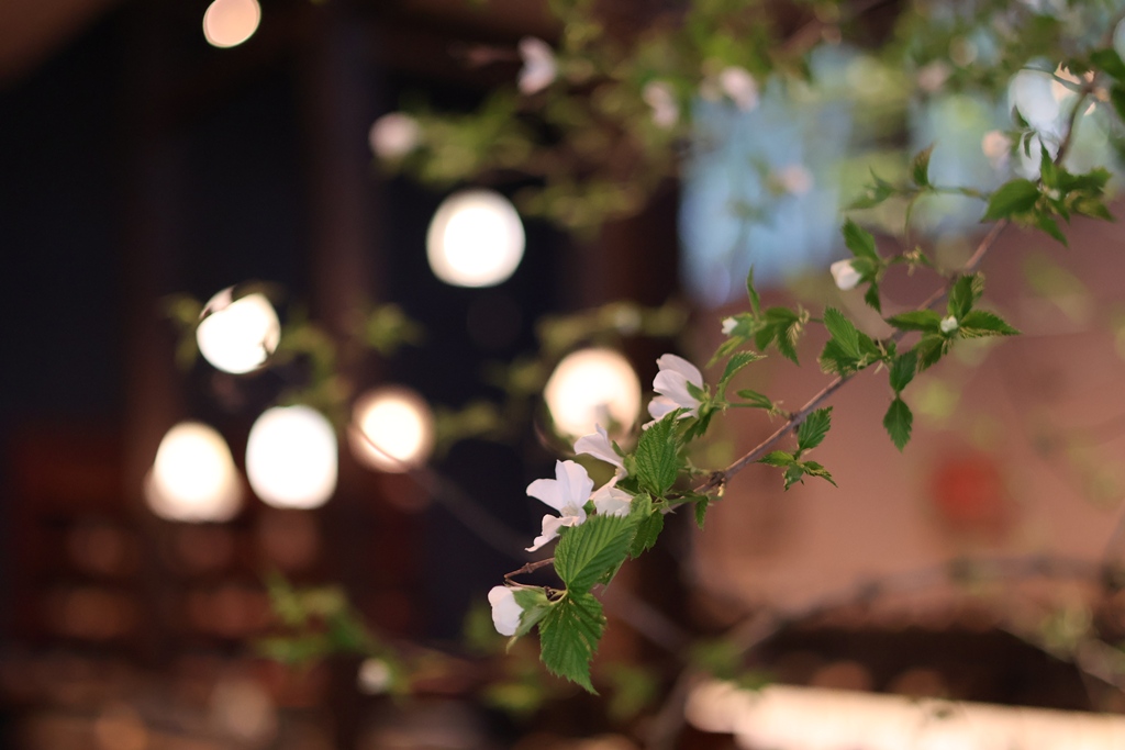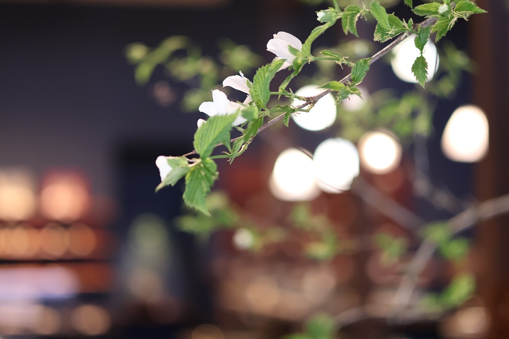今回は大きな枝を大胆に切って生け込み、見事な花を咲かせています。
